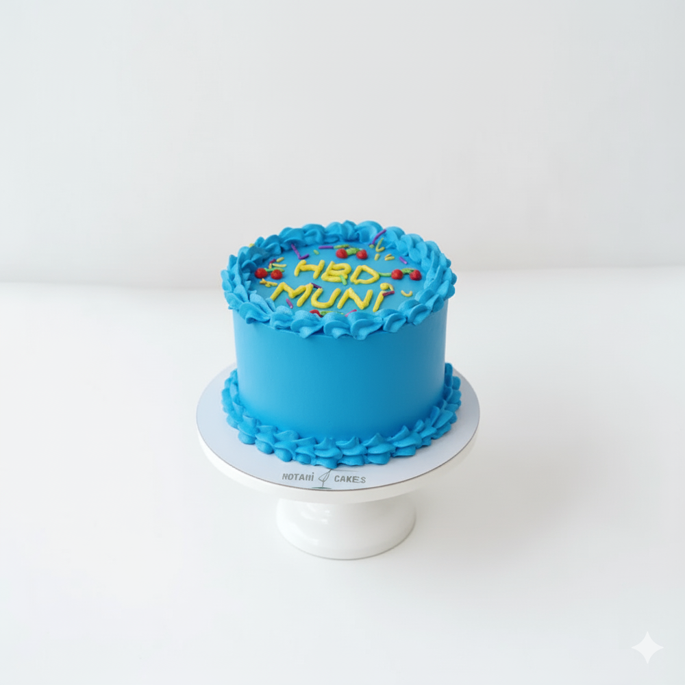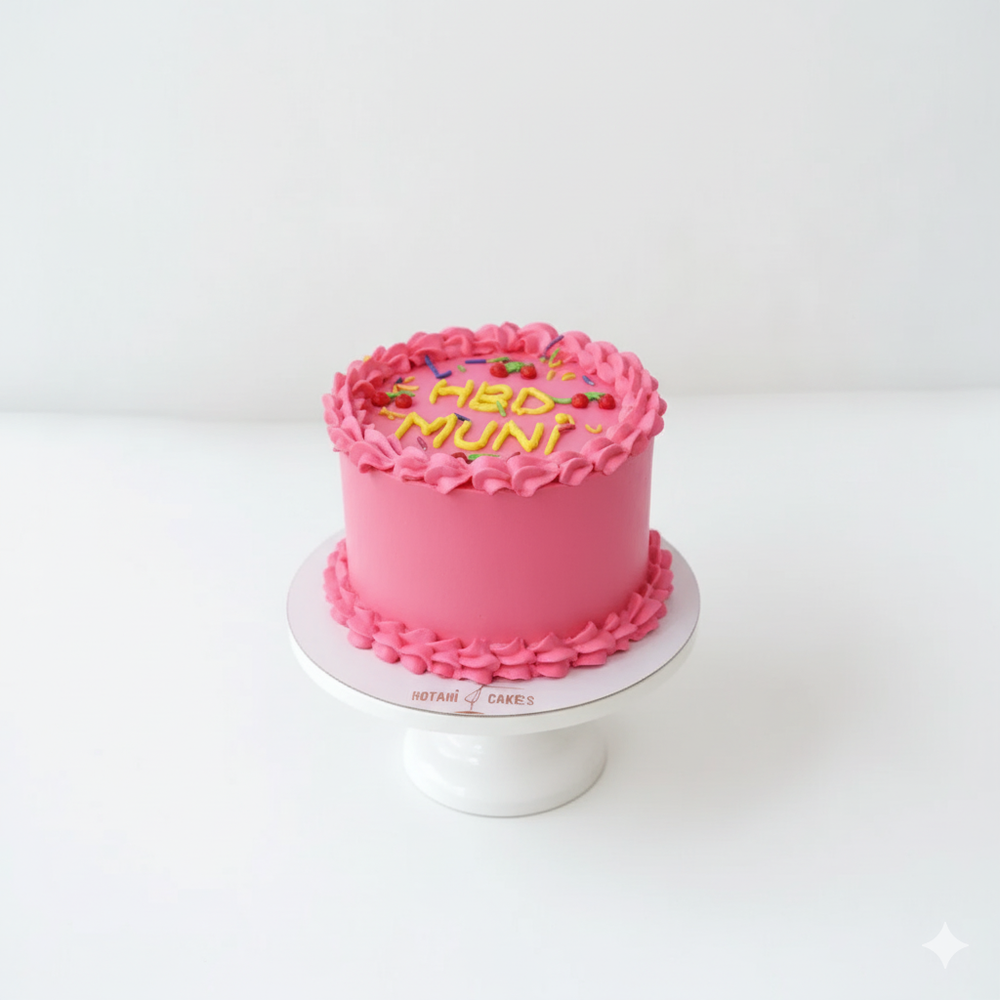 Decoration Details: The cake is coated in fresh cream, fresh cream piping on top & bottom, edible cherries drawing & writing on top.