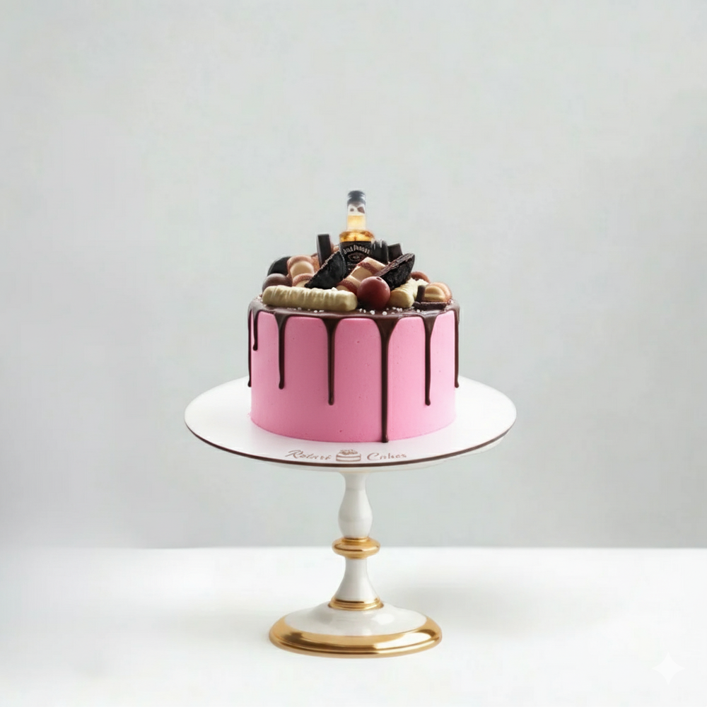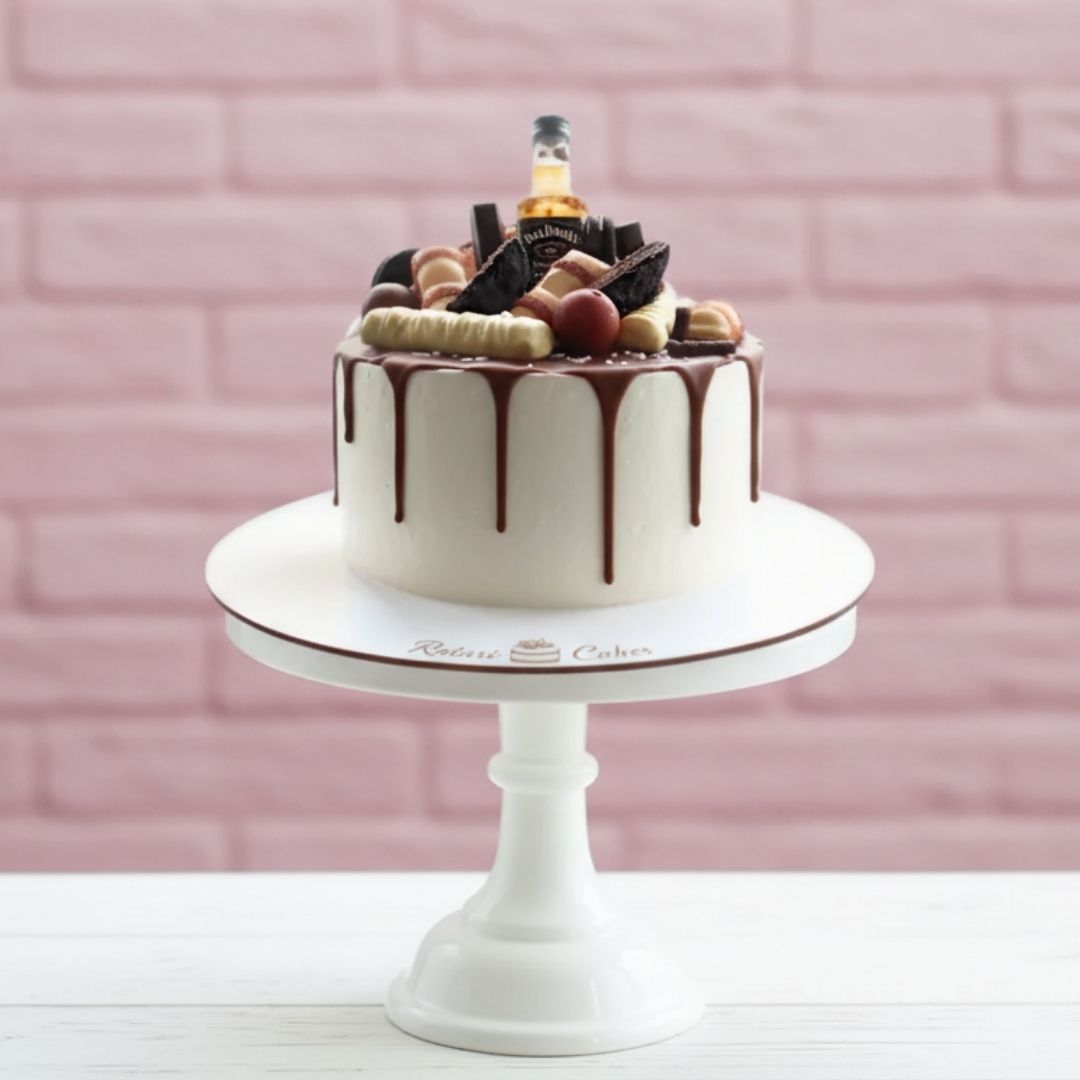 Don’t miss our Almond Pistachios & Belgian Chocolate, Carrot Cake, or unique combinations like Red Velvet & Raspberry, Red Velvet & Strawberry, and Red Velvet & Berries. Try our Snickers-inspired flavor for a rich and indulgent touch! Decorated as seen in the picture. chocolate all over the top and drizzled on the sided decorated with jack Daniels and chocolate