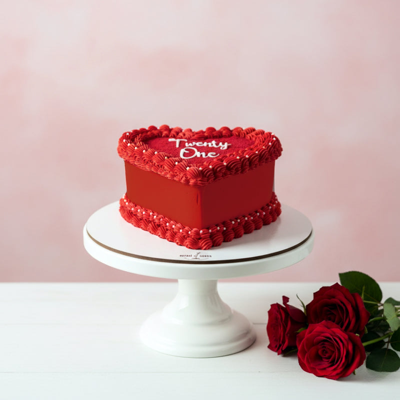 Decoration Details: The cake is coated in deep red Belgian chocolate ganache, piping on top & sides with edible pearls, edible glitter, Non edible writing on the top of cake.