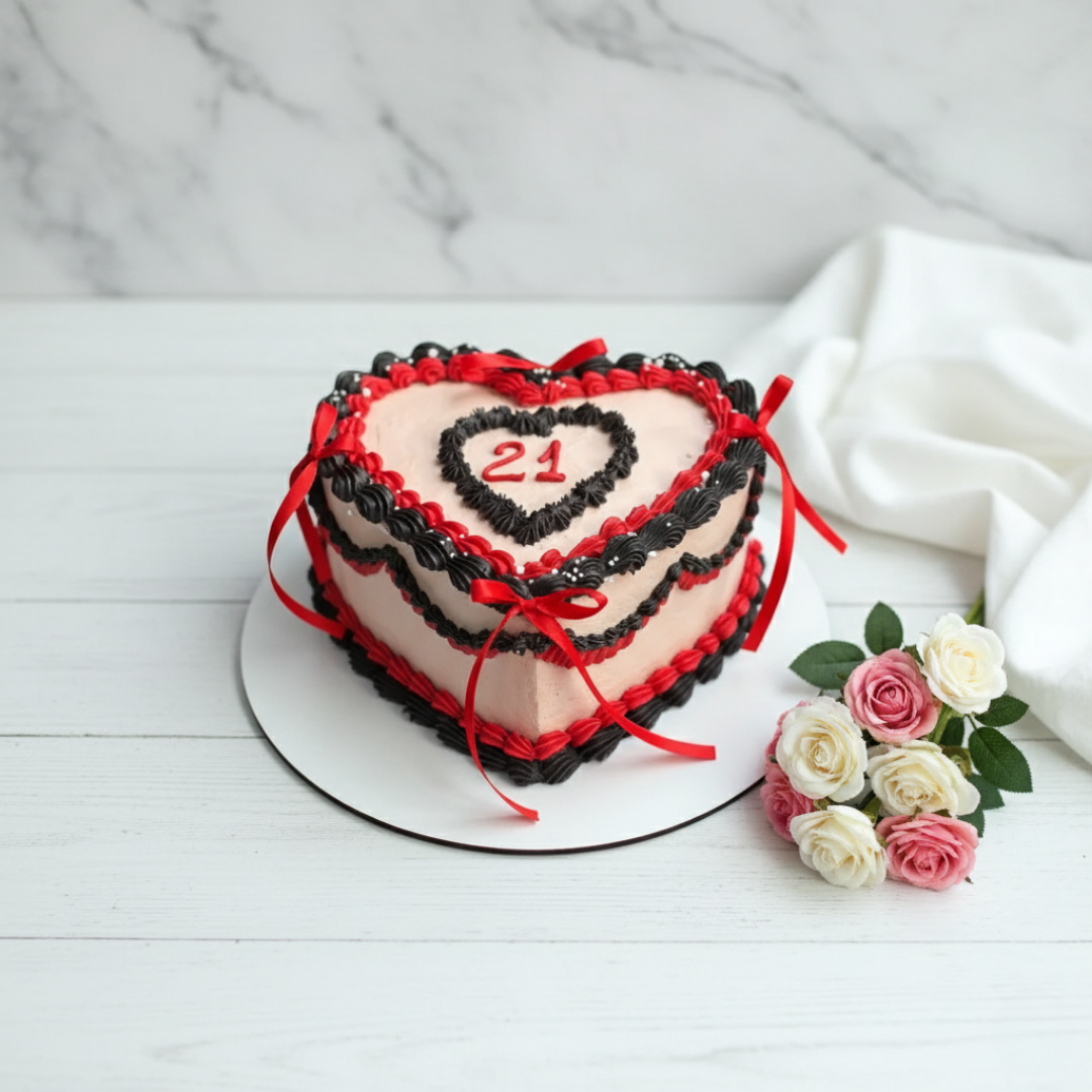 Indulge in a sweet treat with our Mini Red Ribbon Heart Cake. Crafted with love, each mini cake is adorned with a red ribbon, making it perfect for birthdays, Valentine's Day, anniversaries, or any special occasion.