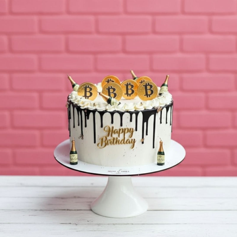 Celebrate your passion for cryptocurrency with this stunning Bitcoin-themed cake. Perfect for enthusiasts and special occasions alike, this cake combines eye-catching design with delicious flavour. Whether for a birthday, event, or just because, it’s a unique way to showcase your love for Bitcoin.